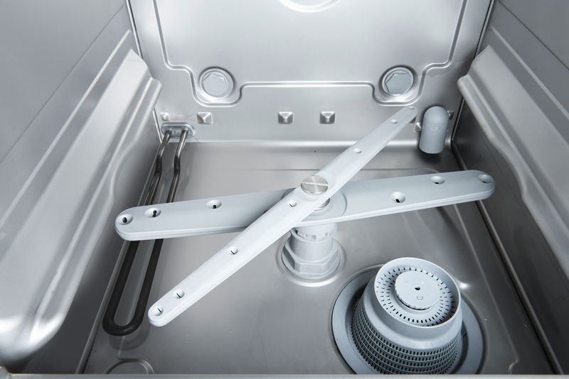 - Tank, frame, rinse arm and panels are stainless steel 1.4301